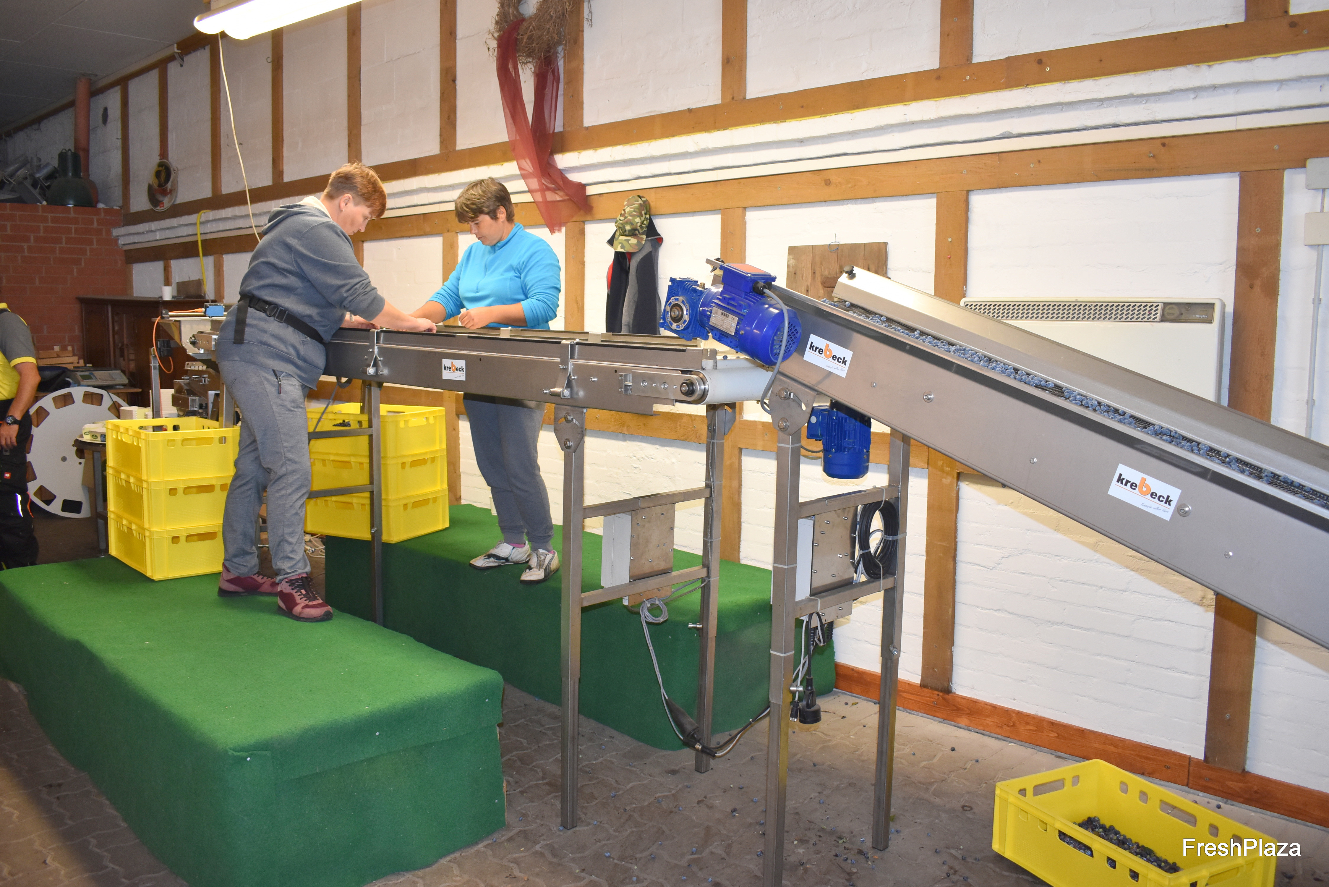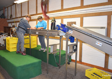 Frische Heidelbeeren vom veranstaltenden Erzeugerbetrieb Hof Oelkers werden vor Ort mithilfe einer Krebeck-Anlage sortiert.