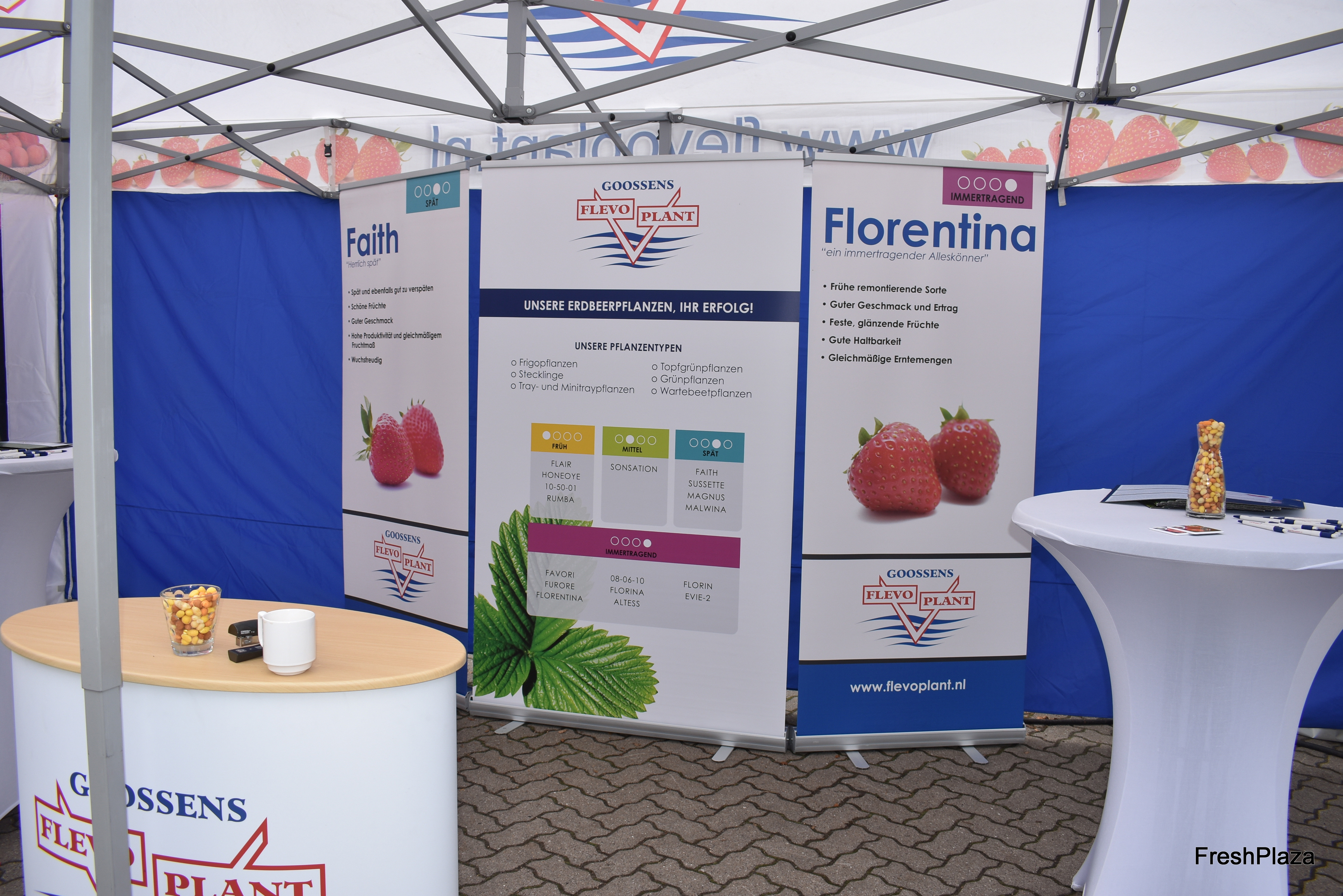Am Stand des niederländischen Jungpflanzenvertriebs Flevoplant BV stehen die beiden Erdbeersorten Faith und Florentina besonders im Fokus.
