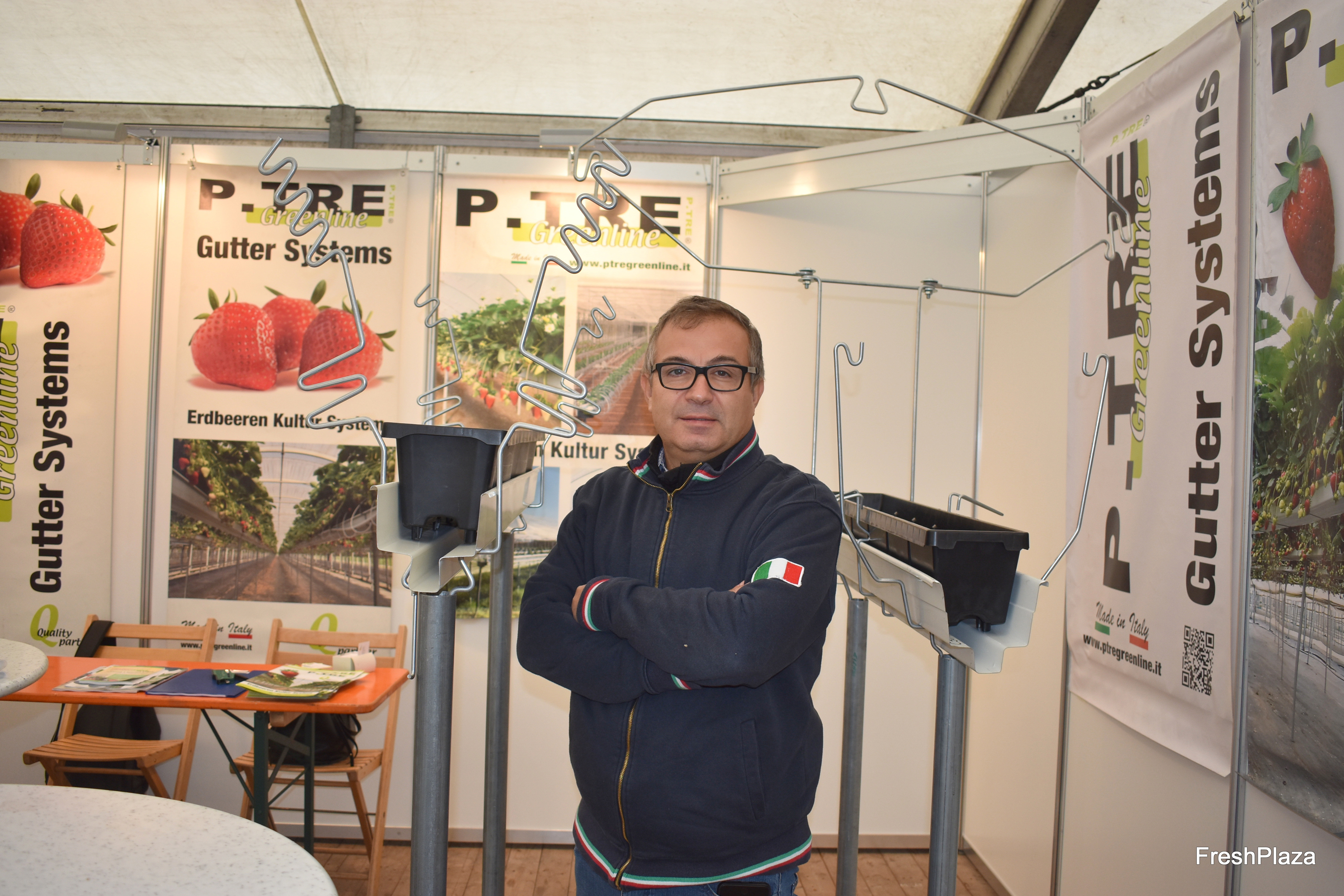Michele Pavano am Stand des italienischen Gartenbau-Zulieferanten P.Tre.