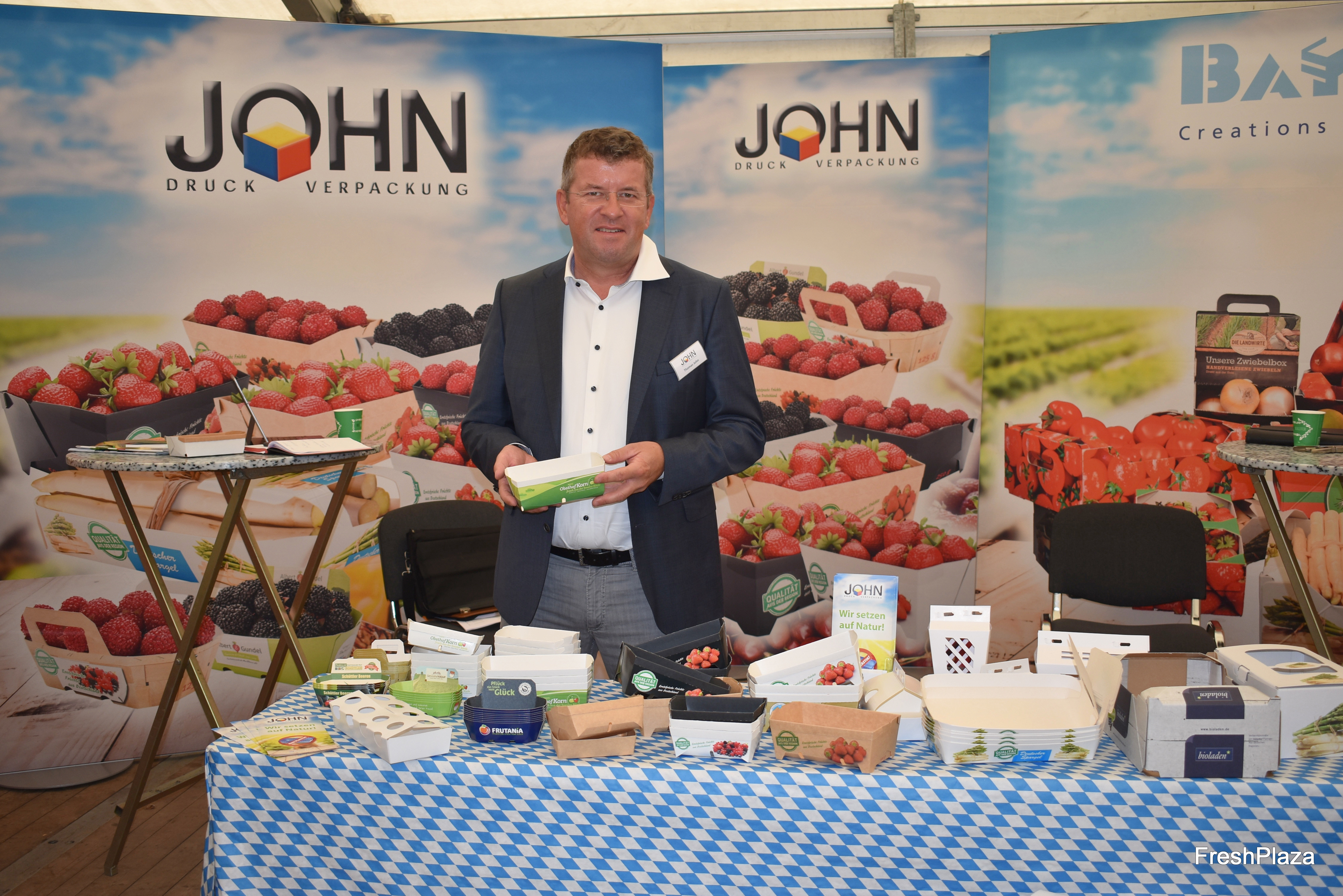 Thomas John von John Druck zeigt eine breite Auswahl an nachhaltigen Beerenschalen. Das Unternehmen arbeitet eng mit der BayPack GmbH zusammen.