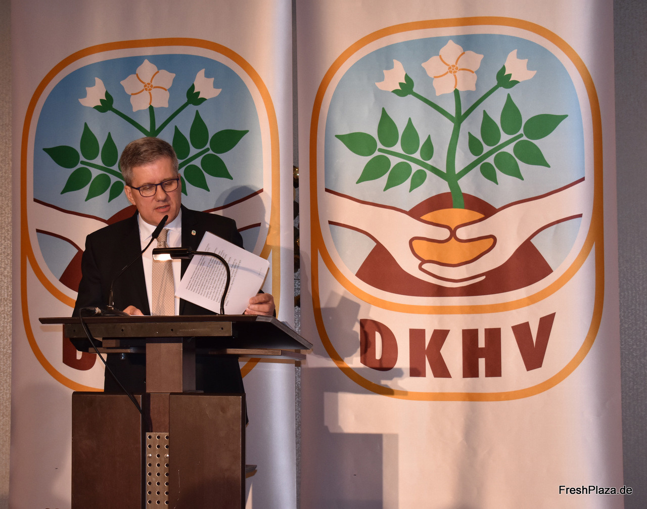 Thomas Herkenrath - Präsident des Deutschen Kartoffel-Handelsverbandes (DKHV) begrüßt das Publikum zum 16. Internationalen Berliner Kartoffelabend.