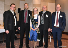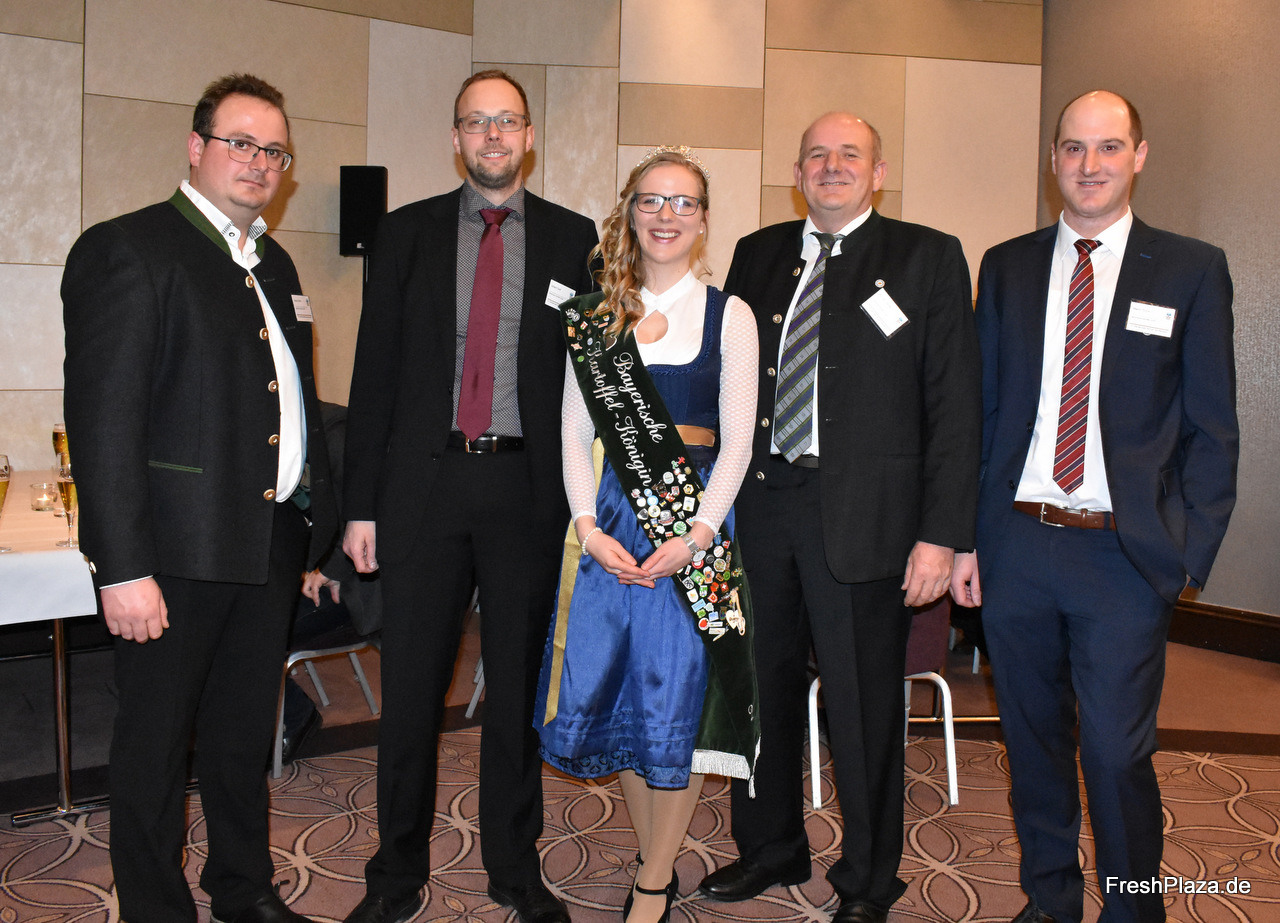 Die Vertreter der bayerischen Kartoffelwirtschaft in Gesellschaft der bayerische Kartoffelköningin: Georg Zollner, Johann Graf (Geschäftsführer der Bay. Kartoffel GmbH), Konrad Zollner und Martin Glöckl.