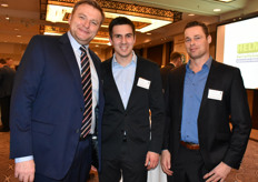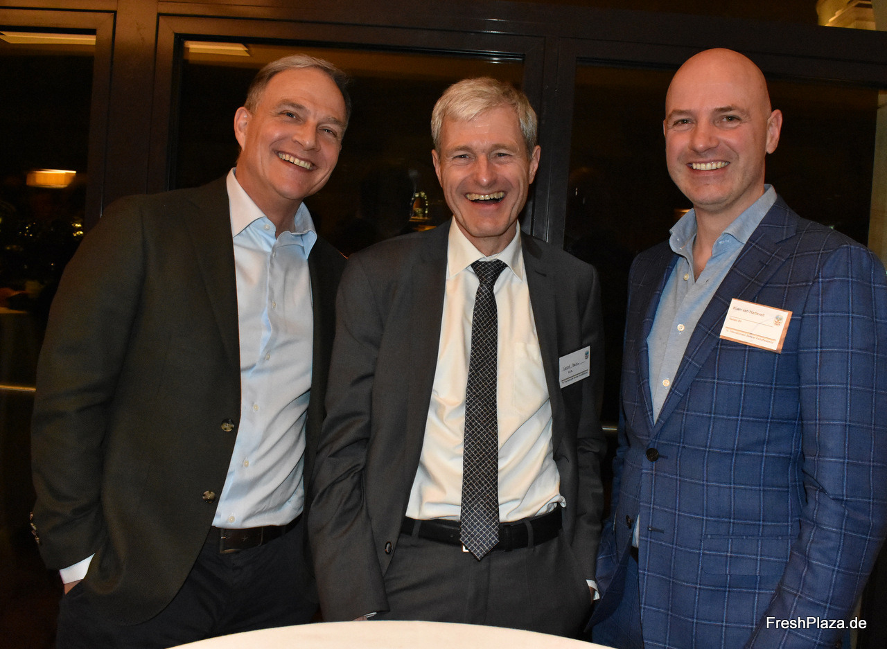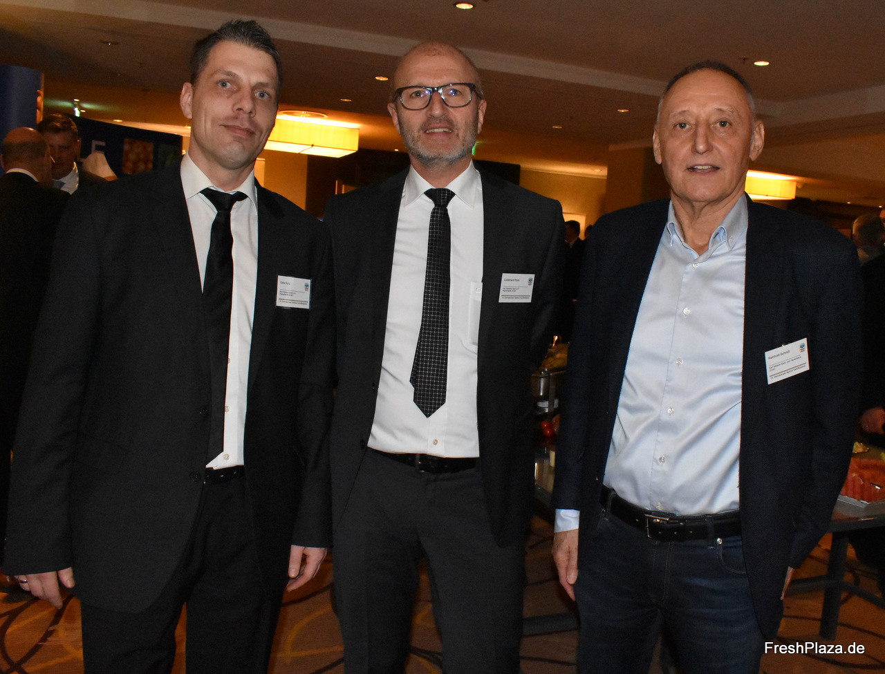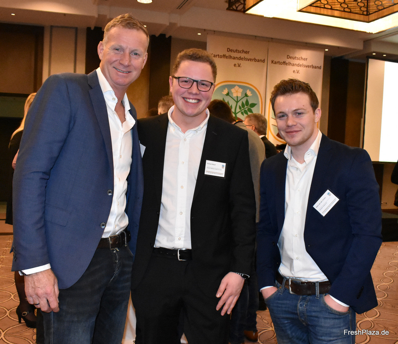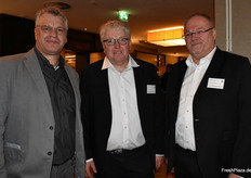Carel van Buchem (Nedato), Gerard Backx (HZPC) und Koen van Hartevelt (Nedato). Für Van Hartevelt war der Kartoffelabend und im Anschluss die Fruit Logistica sein erster Termin als neuer kaufmännischer Betriebsleiter bei Nedato. In der Vergangenheit war der erfahrene Manager u.a. bei McCain tätig.