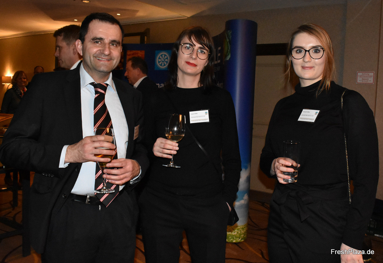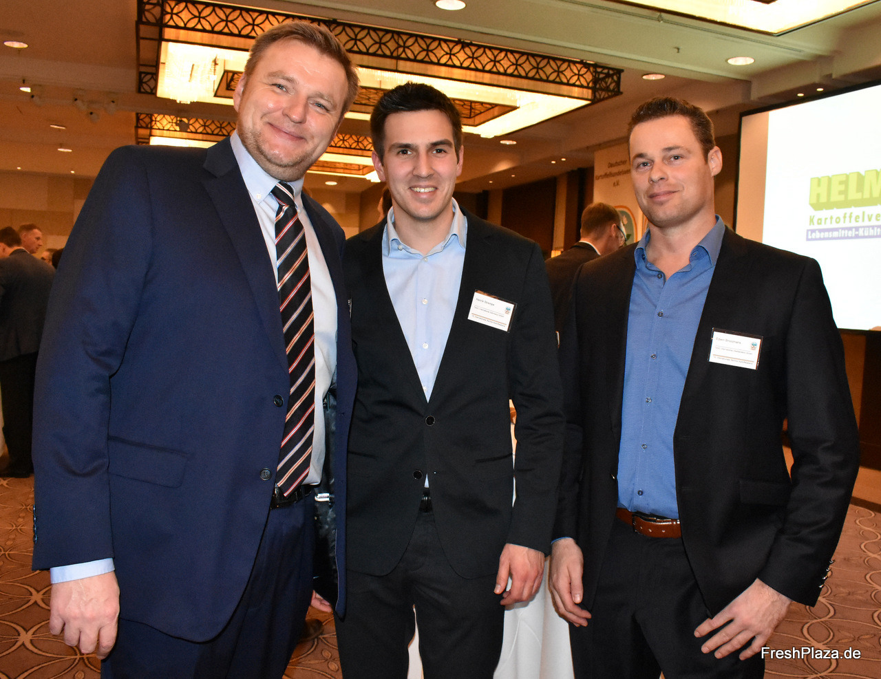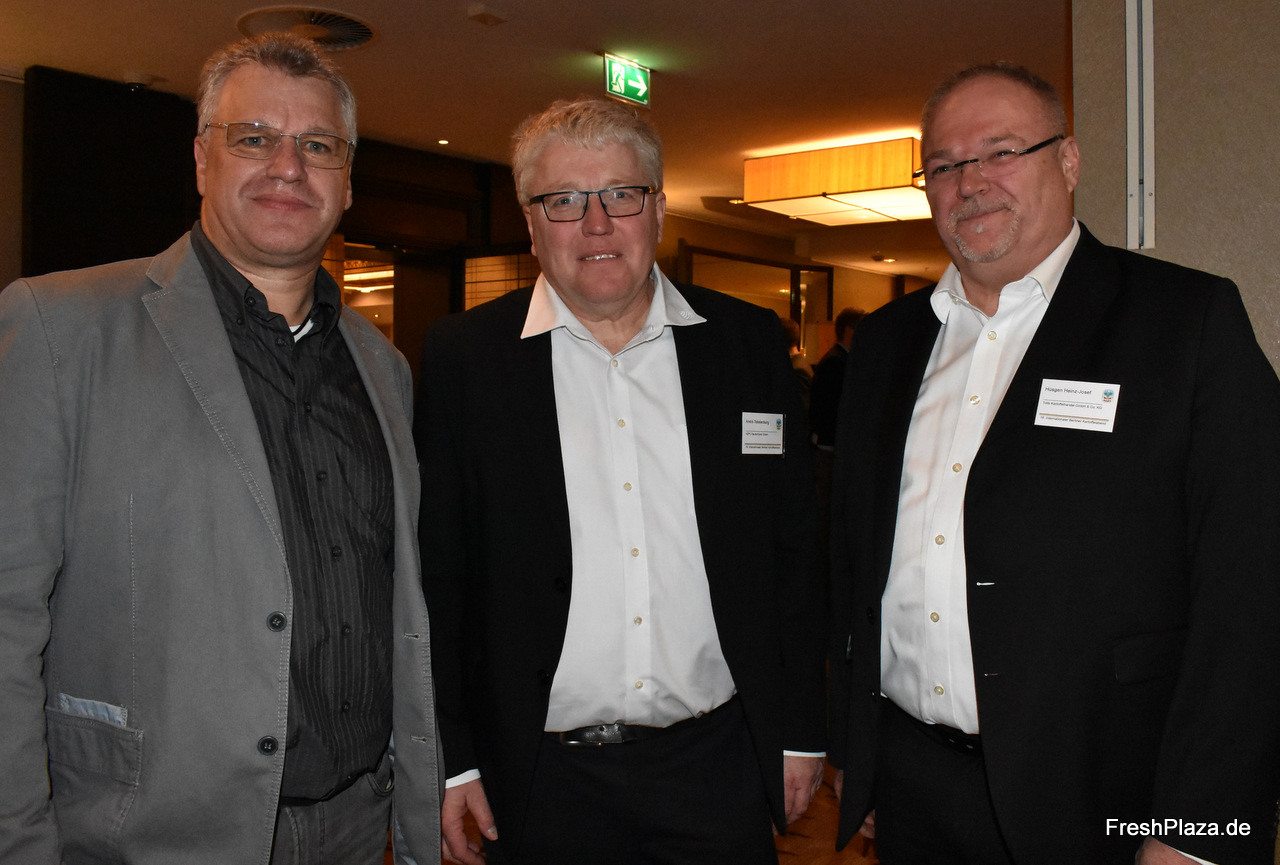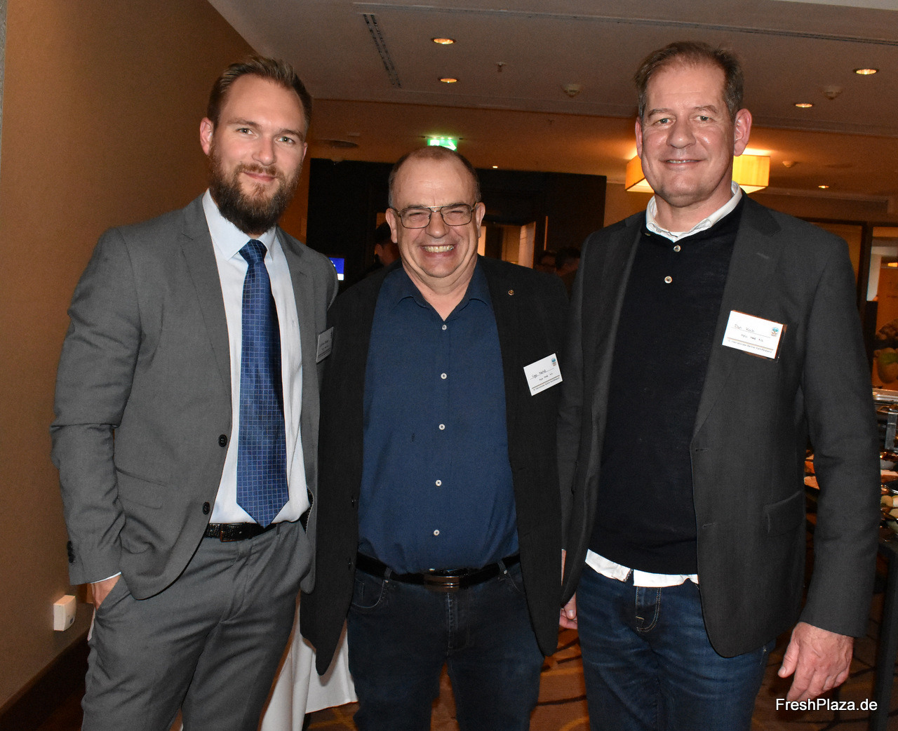 Carel van Buchem (Nedato), Gerard Backx (HZPC) und Koen van Hartevelt (Nedato). Für Van Hartevelt war der Kartoffelabend und im Anschluss die Fruit Logistica sein erster Termin als neuer kaufmännischer Betriebsleiter bei Nedato. In der Vergangenheit war der erfahrene Manager u.a. bei McCain tätig.