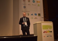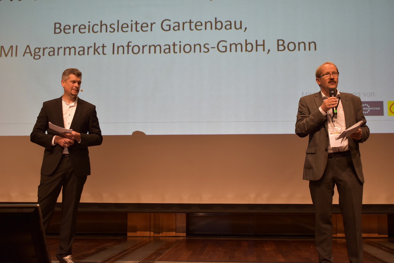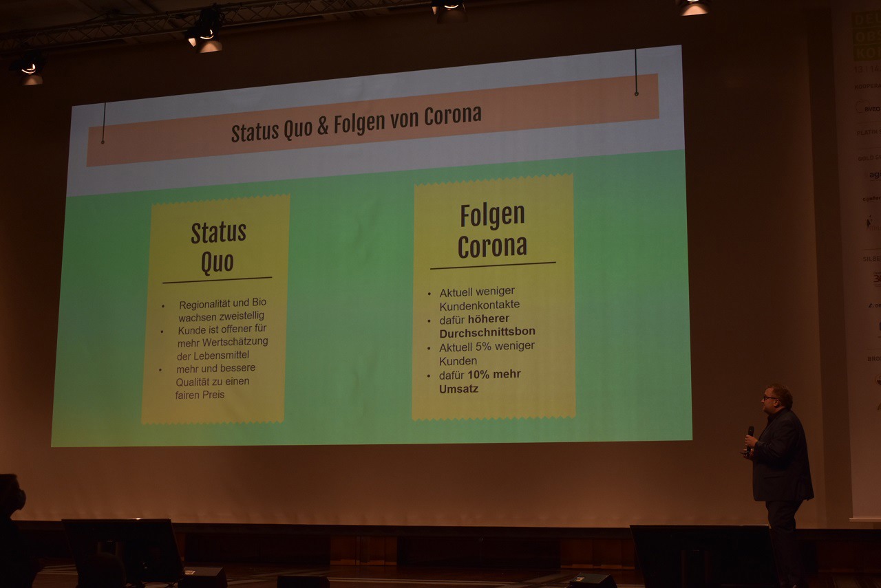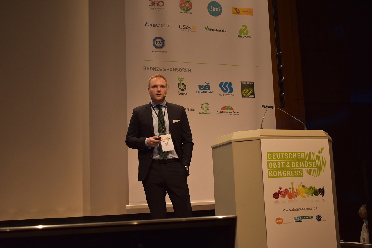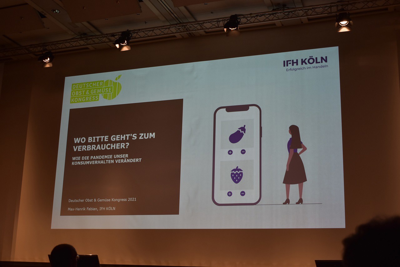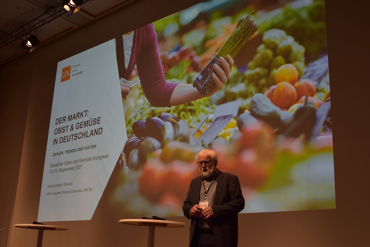 Helmut Hübsch von der GfK trägt die Zahlen, Trends und Fakten vom Obst- und Gemüsemarkt in Deutschland vor.