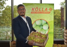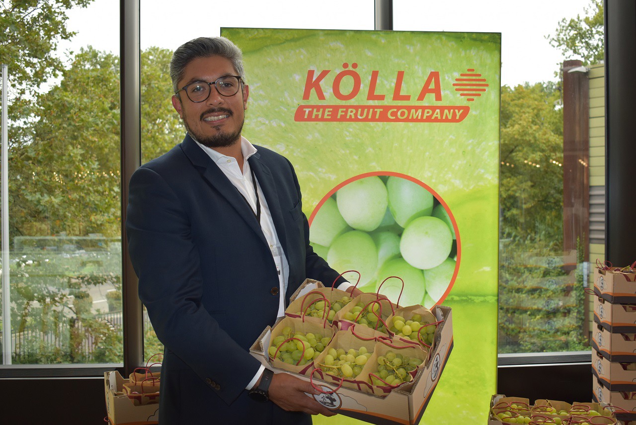 Jose Claure von Kölla Overseas B.V. hält zwar eine Kiste mit hellen Trauben in den Händen, ist aber davon überzeugt, dass die Nachfrage nach dunkleren Sorten steigen wird