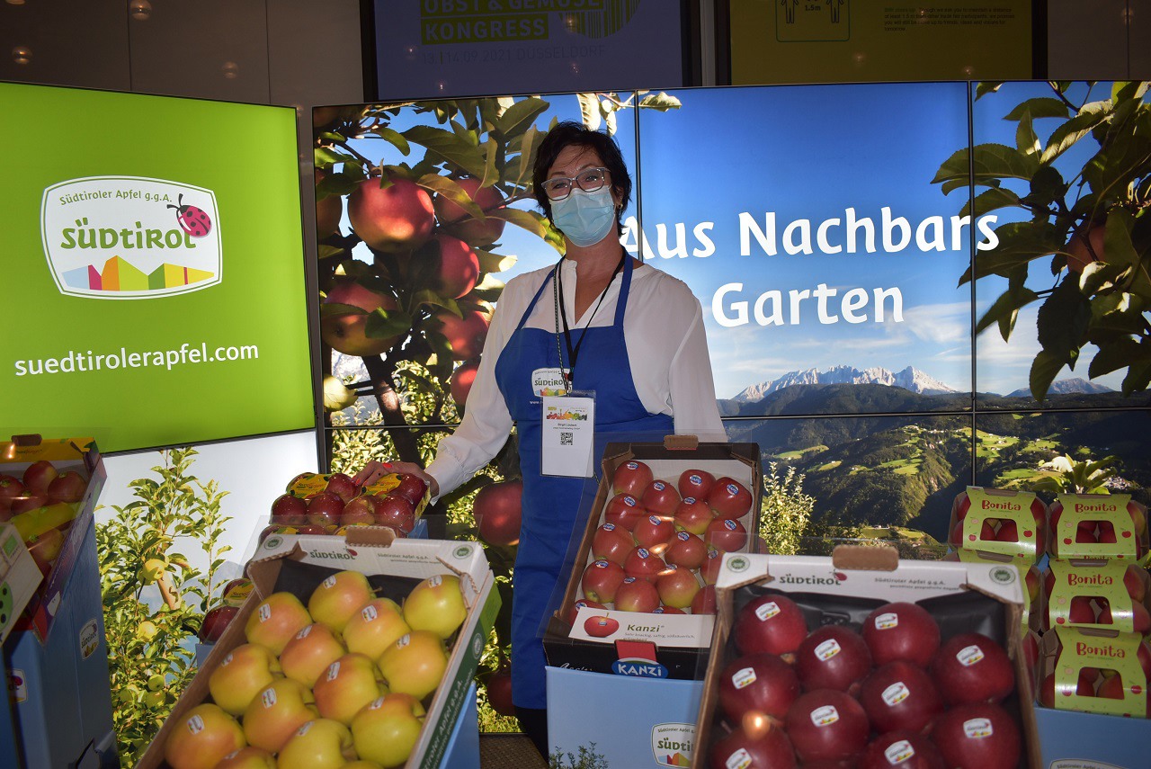 Birgit Lückert von pepp foodmarketing GmbH präsentiert bestehende und neue Sorten von Südtiroler Äpfeln