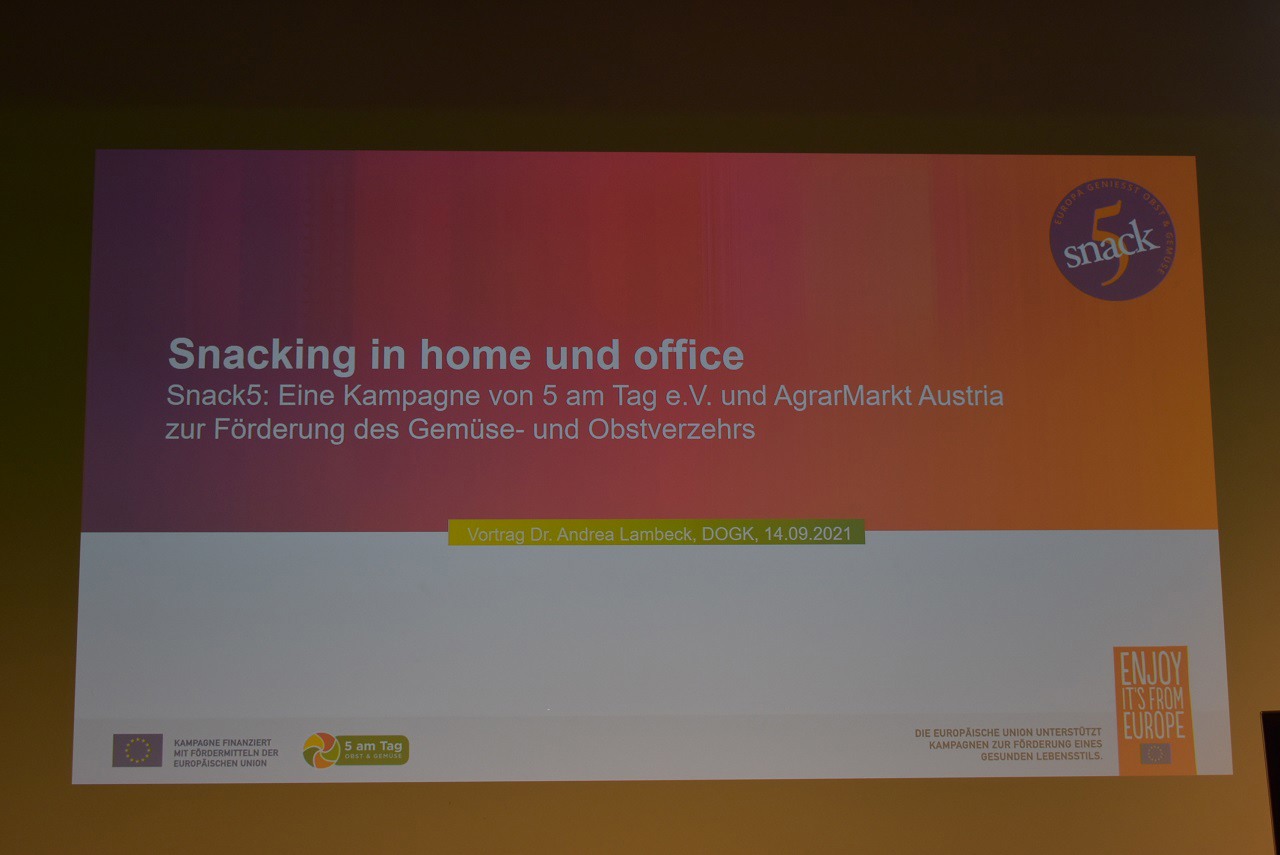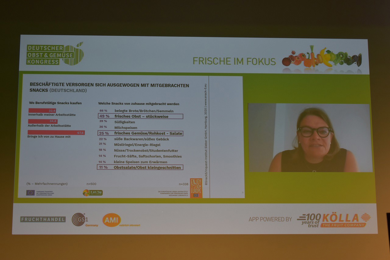 Dr. Andrea Lambeck wurde von ihrem Büro aus zugeschaltet und setzt sich zusammen mit der 5 am Tag e.V. für einen gesunderen und bewussteren Umgang mit Snacking ein.