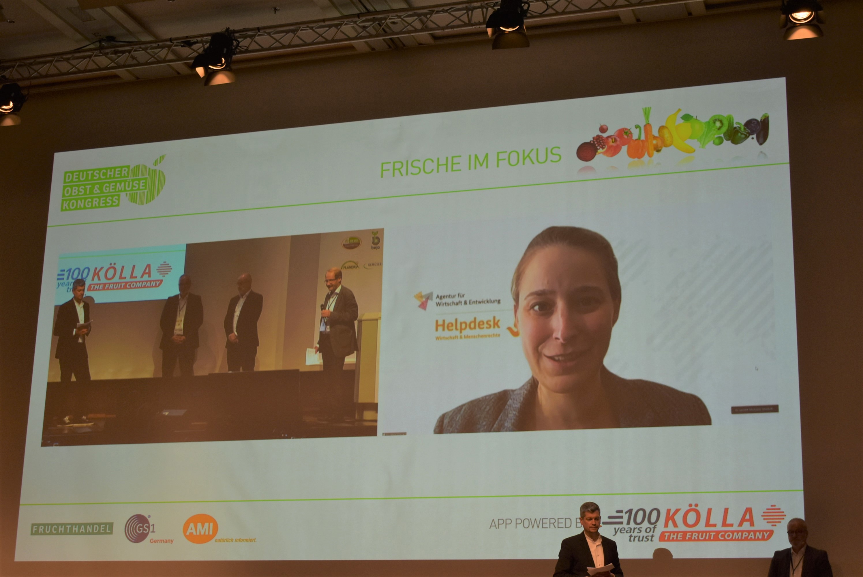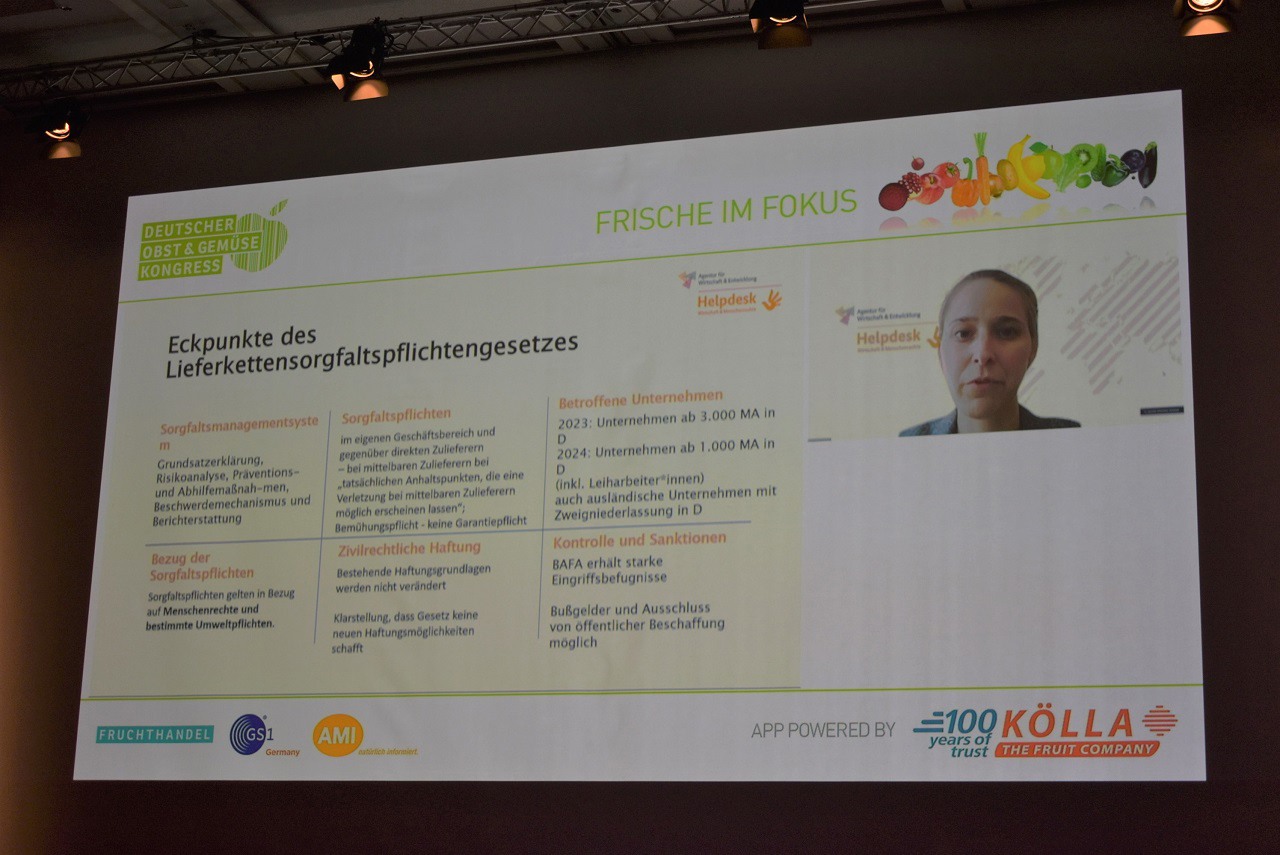 Michaela Streibelt vom Helpdesk Wirtschaft & Menschenrechte stellt das Lieferkettengesetz vor.