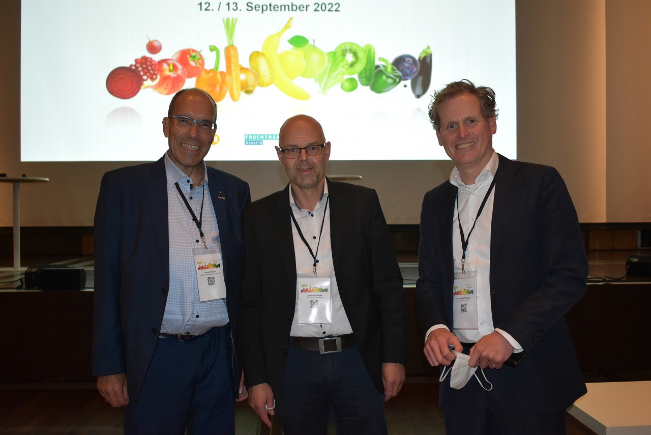 Frank Döscher von Elbe-Obst, Joachim Stracke von Fruit Retail und Dr. Jochem Wolthuis von Duitsland Desk waren sichtlich zufrieden mit der DOGK 2021.
