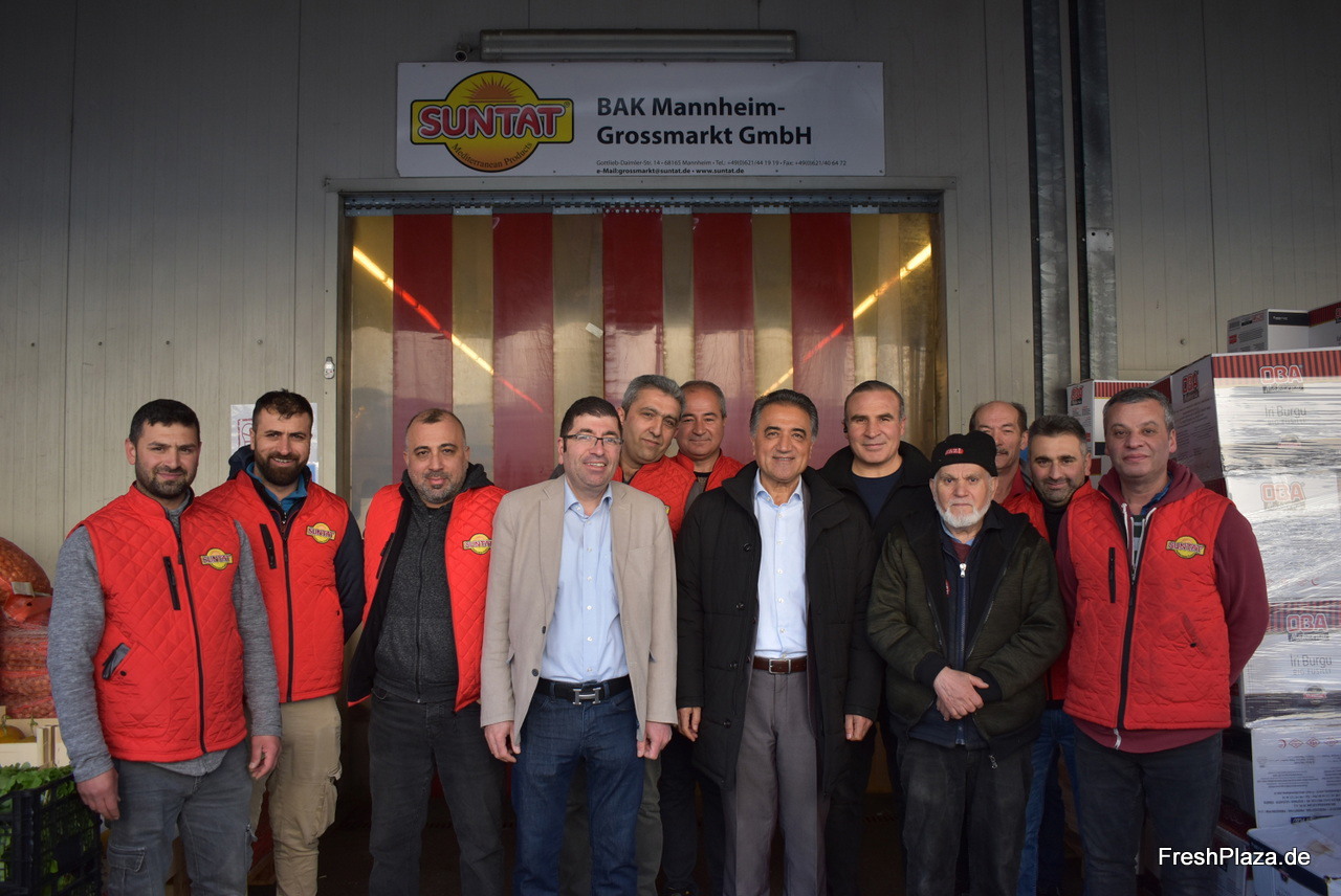 Das Team um Güven Baklan (4. von links) am Großmarkt Mannheim, hier zusammen mit seinem Vater und Geschäftsführer von BLG Kardesler Lebensmittel Handels GmbH ("Suntat"), Mustafa Baklan (6. von rechts).