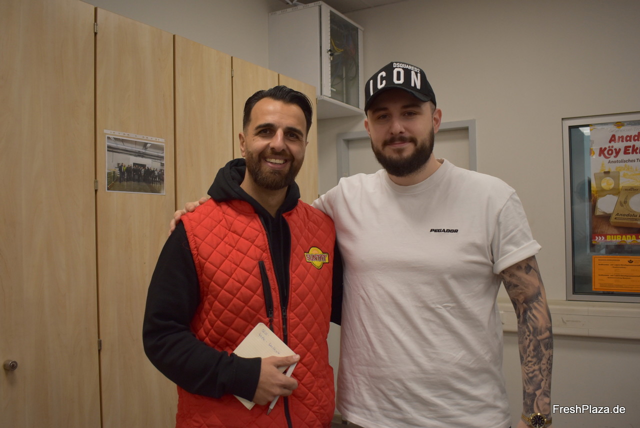 Zwei langjährige Mitarbeiter am Großmarktstand von Suntat: Mustafa Yildiz und Baris Kaplan.