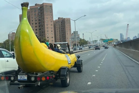 Ein riesiges Bananenauto stiehlt dem Highway die Show